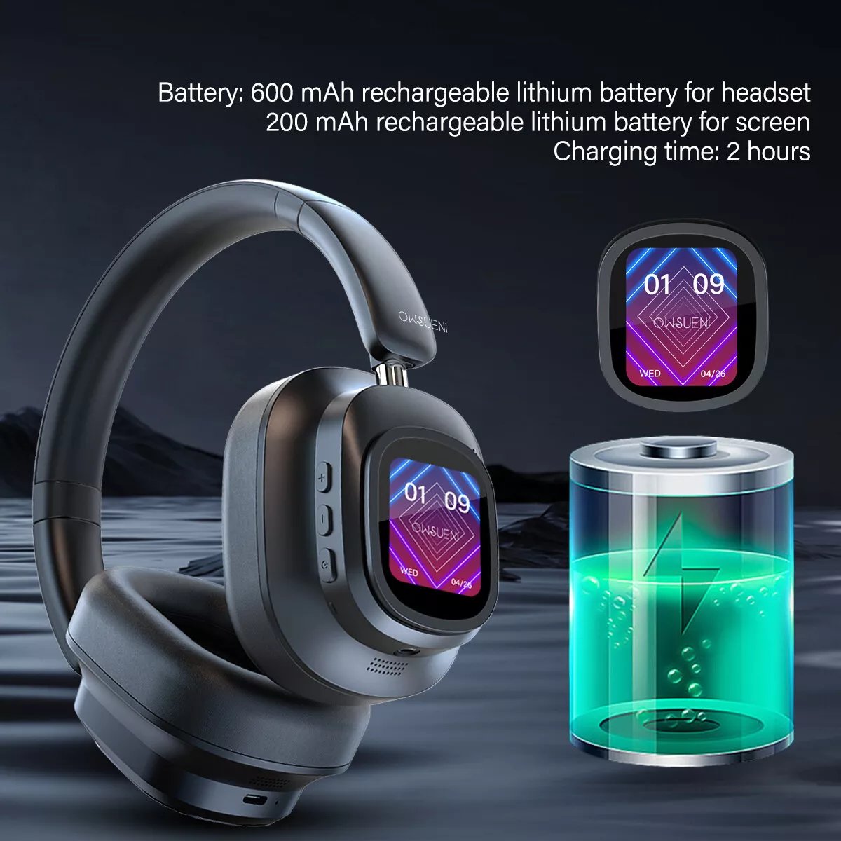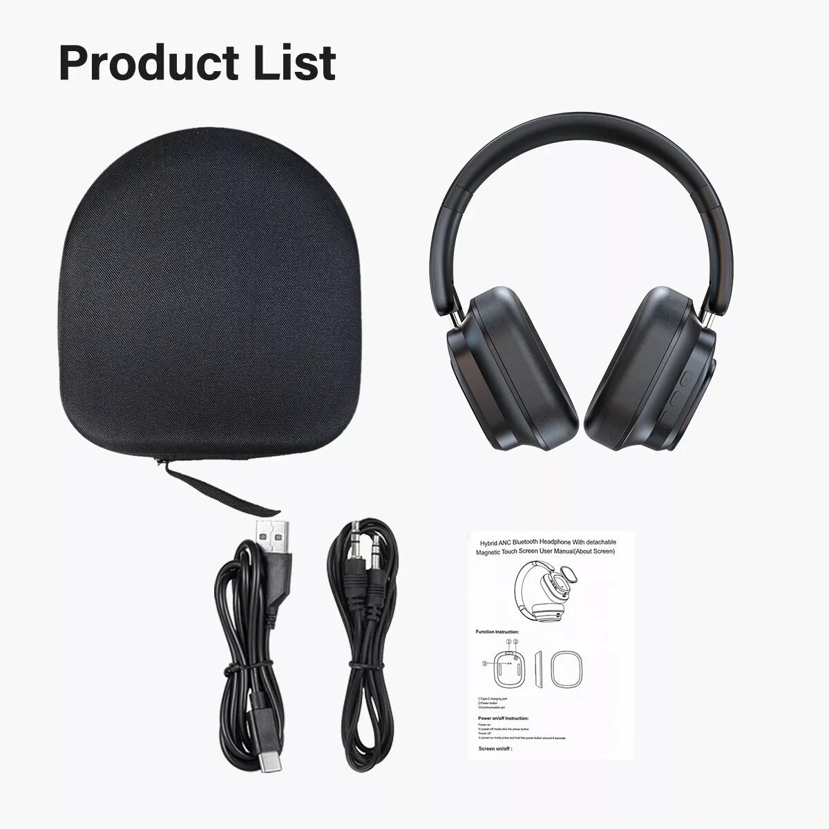• Hybrid ANC Bluetooth 5.3 Headphones Over-Ear Wireless Headsets with LCD Screen
